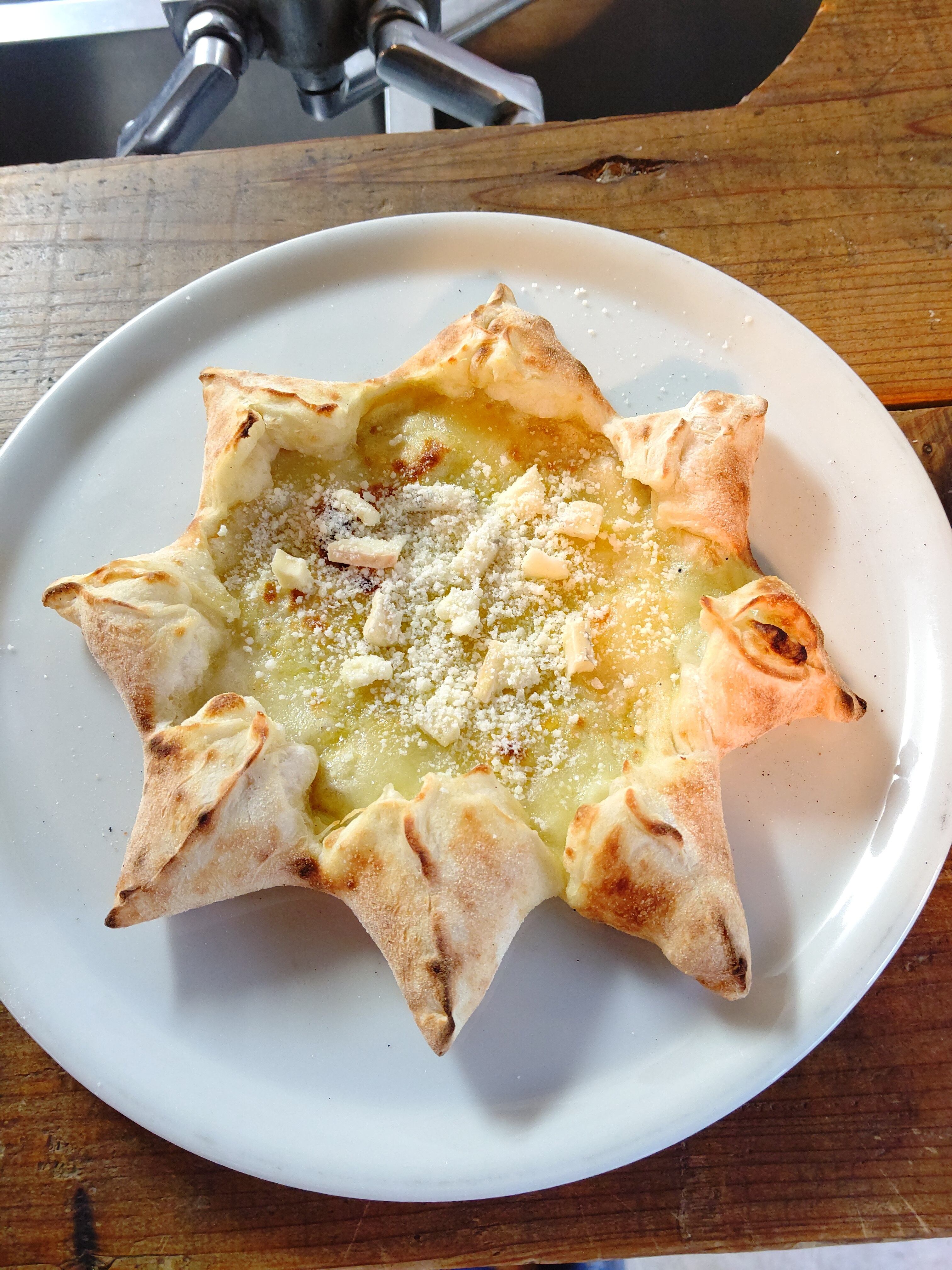 お味は、4種のチーズ(グラナ・ゴルゴンゾーラ・タレッジョ・モッツアレラ)のクアトロフォルマッジです。