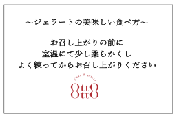お召し上がりの際は冷凍庫から取り出し常温にて5分程度置いた後、よく練って頂くとよりジェラートの風味や食感をお楽しみいただけます。